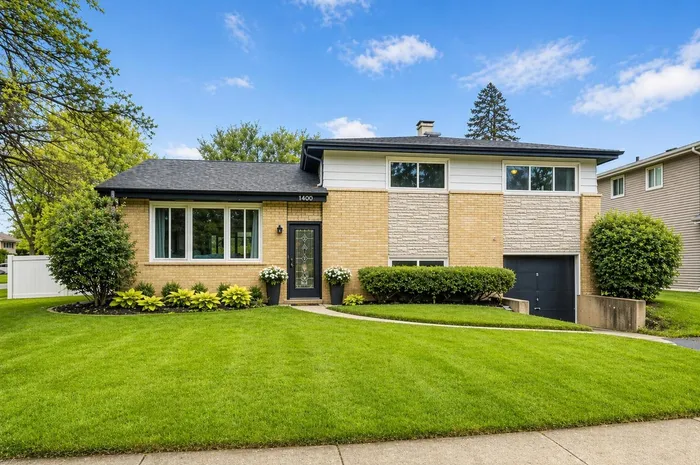 Welcome home to this beautifully redesigned and updated corner lot split-level in a highly desirable Hersey High School district location, featuring a spacious open-concept living and dining room with new flooring, vaulted ceilings, and large windows that fill the space with natural light. The updated, freshly painted kitchen offers stainless steel appliances and a center island, which anchors the space, with sliding patio doors off the dining area leading to a generous backyard with a covered patio-perfect for entertaining. The upper level includes three bedrooms with refinished hardwood flooring and an updated bath, while the lower level features a comfortable family room, an additional updated full bath, a laundry room, and access to the attached garage with ample storage. Situated on a sun-drenched corner lot, the property boasts a huge, well-manicured backyard complete with a newer privacy fence, covered patio, and large shed, with potential for an additional garage. Conveniently located near top-rated schools, Metra, shopping, parks, pools, and bike trails, this home shows beautifully and is ready for its next owner.
